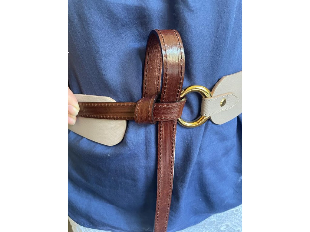 Celokožený zavazovací pásek. Z vnitřní strany opasku je vyražené logo ELEGA made in CZ.